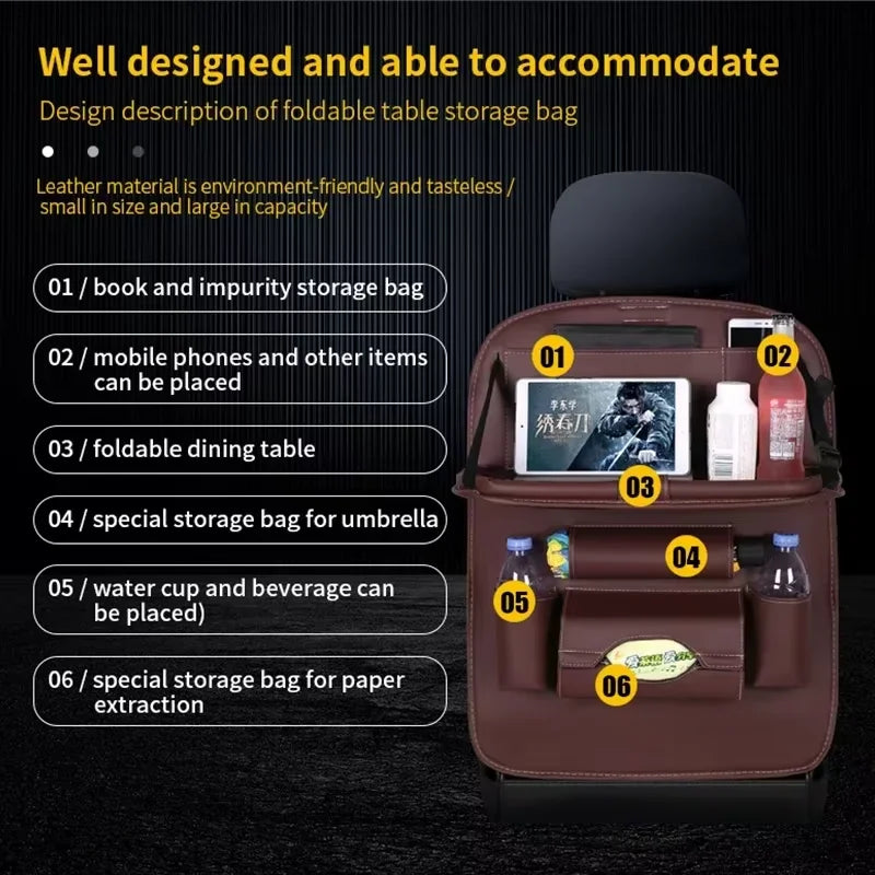 Sac de rangement pour siège support pour tablette et boîte à mouchoirs