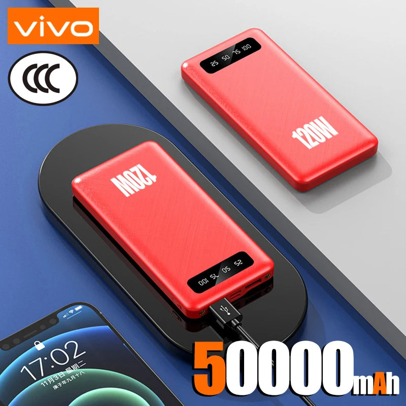 VIVO 200000mAh PowerBank 120W Super Fast Charging High Capacity Portable External Battery With LED Digital Display For IPhone